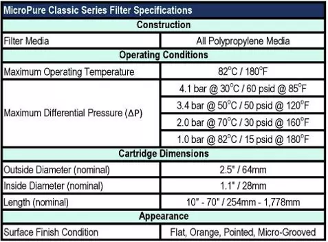 MicroPure Classic Series Melt Blown Cartridge is a pure Polypropylene depth filter cartridge providing premium features including:
